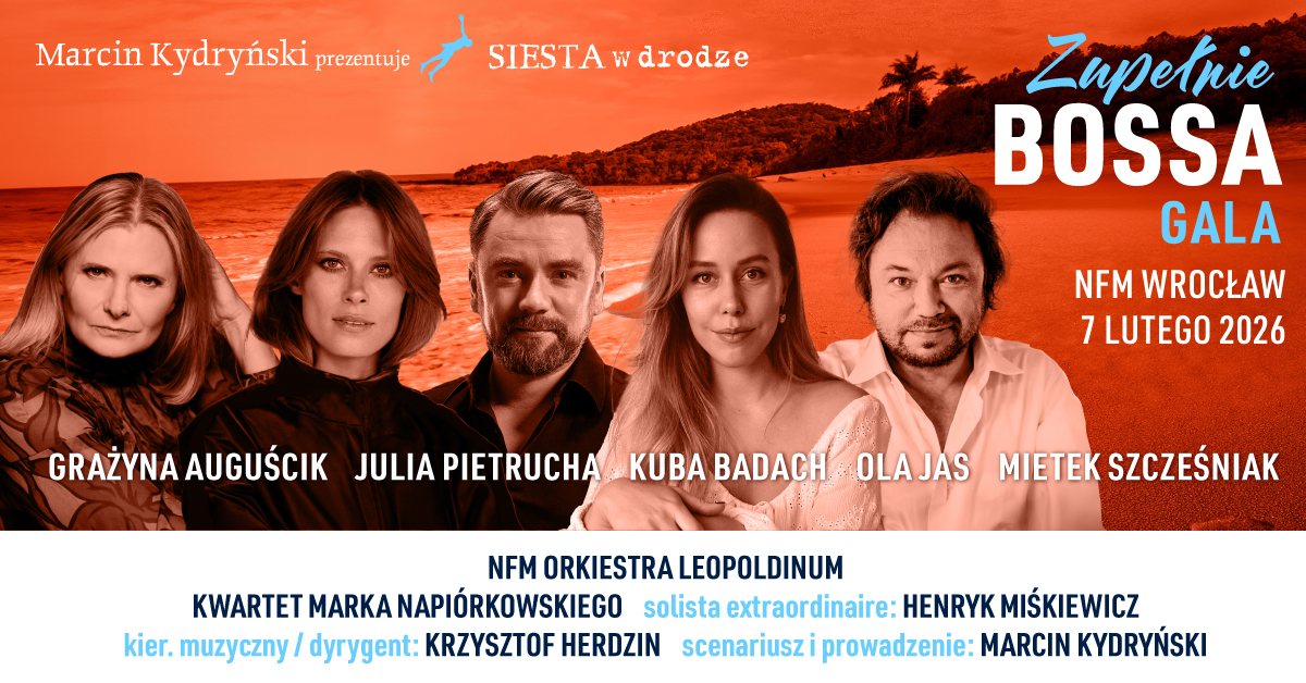 Już 7 lutego we Wrocławiu odbędzie się wyjątkowe muzyczne wydarzenie w ramach projektu Marcina Kydryńskiego SIESTA w drodze. Na scenie Narodowego Forum Muzyki spotkają się wybitni wokaliści, znakomici instrumentaliści oraz Orkiestra NFM Leopoldinum, aby zaprezentować niezapomniane polskie przeboje w nowych, nastrojowych aranżacjach inspirowanych brazylijską bossa novą.